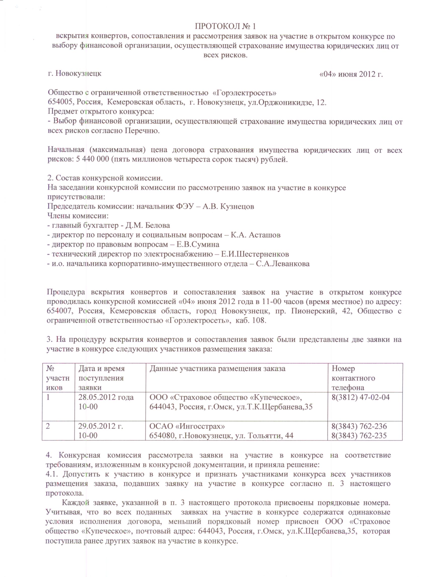 Протокол вскрытия конвертов, сопоставления и рассмотрения заявок на участие в открытом конкурсе_ГЭС_1 |